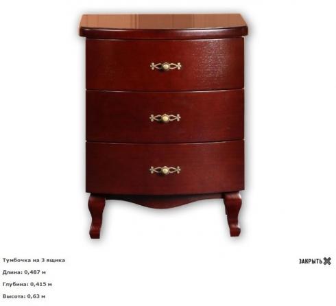 Тумба прилiжкова на 3 шухляди Венера (Вiльха чи ясень), 487*415*630